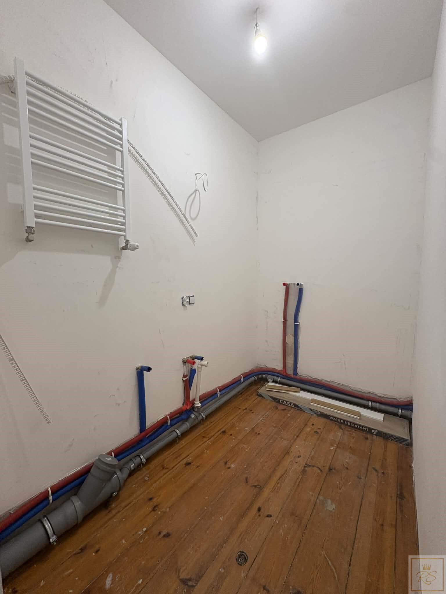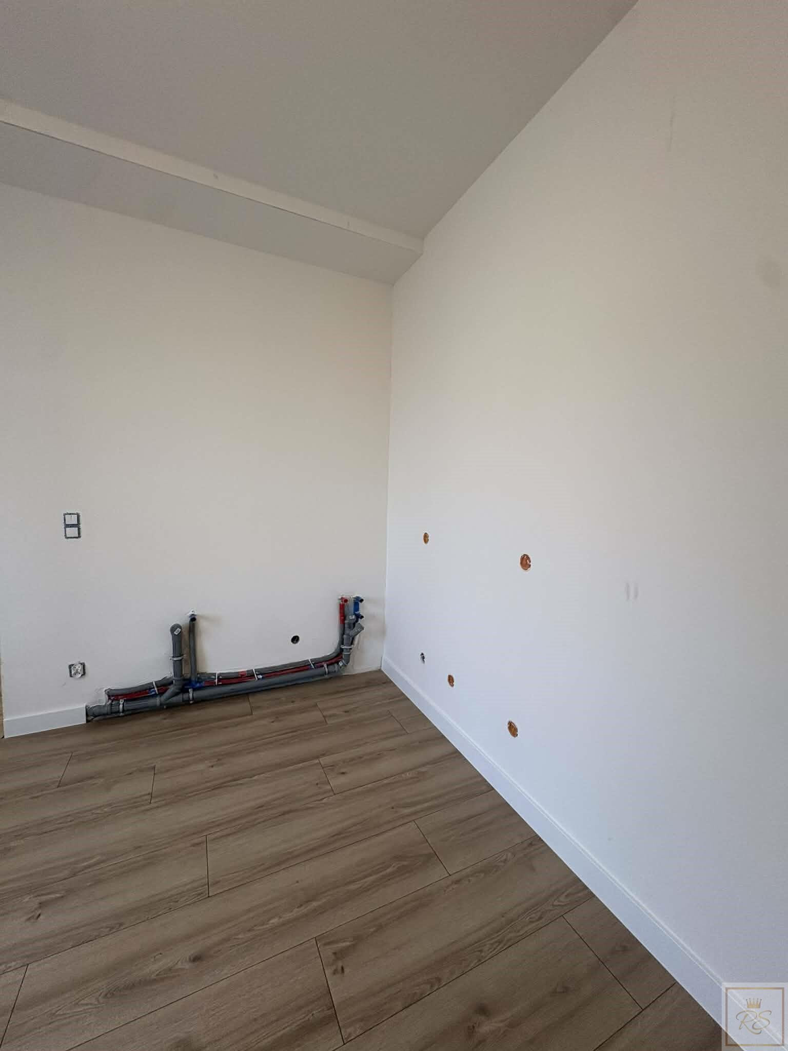 Standard deweloperski z wymienionymi wszystkimi instalacjami i przygotowaniem mediów pod dwa niezależne mieszkania (dwie kawalerki).